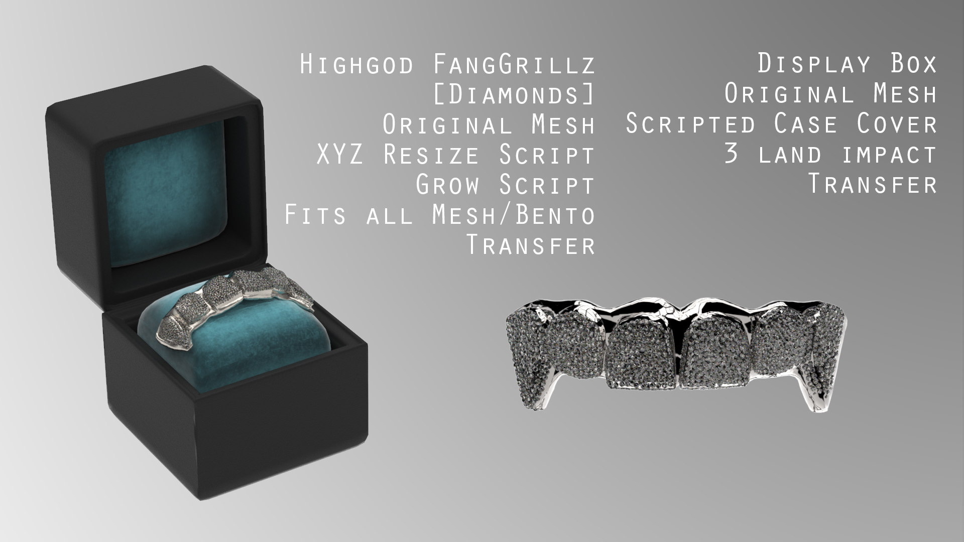 Highgod Originals believe luxury is meant for all. Find accessories and props that are universal for all mesh body types. Diamond encrusted orginal works with resizeable options. Granting all Second Life Residents the freedom of fabulous.